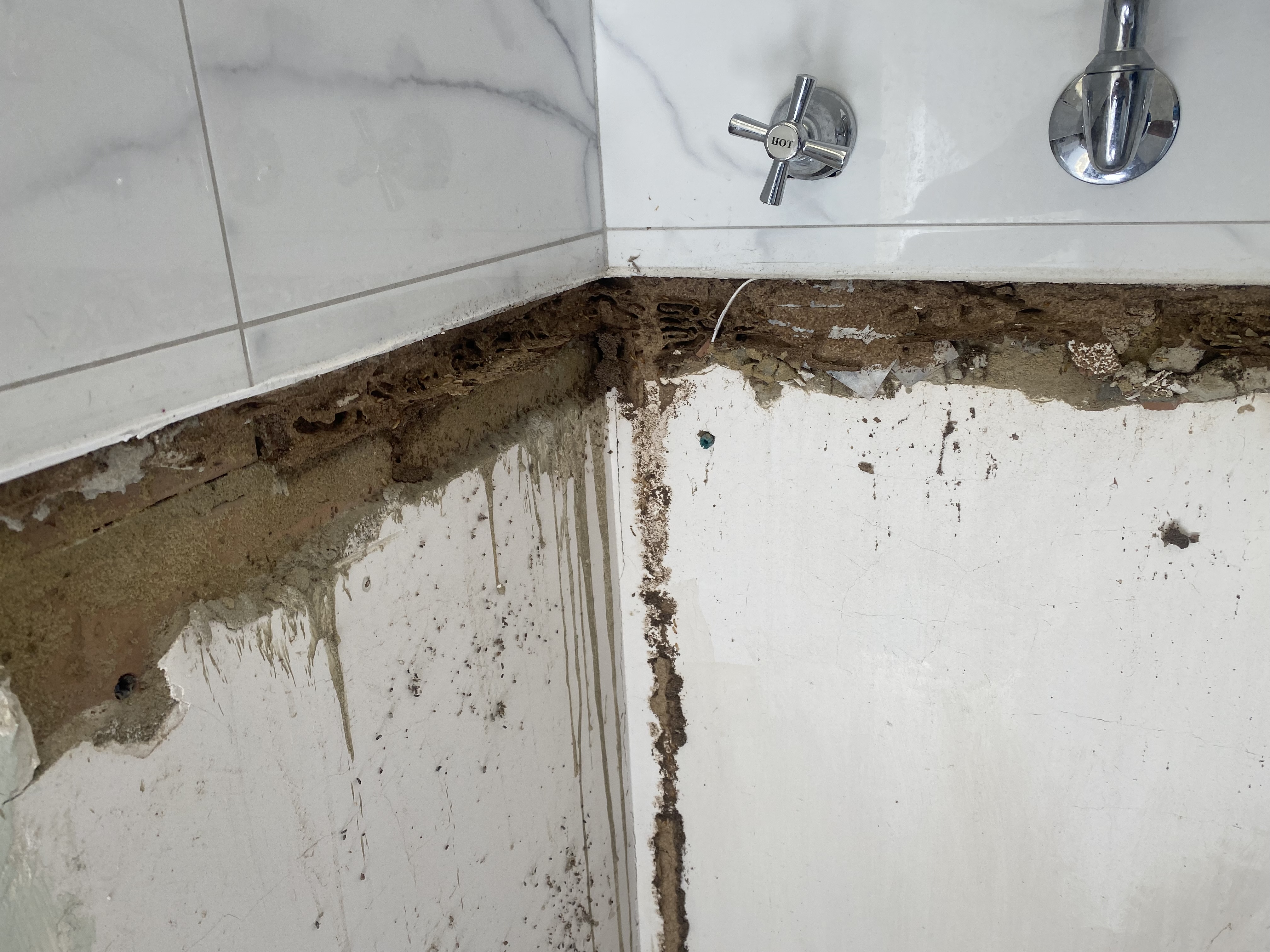 Your home is never immune. Termites will consume the carpet grippers along the wall, they love the chipboard in your kitchen cupboards, laundries as well as dressing room cupboards, roof trussers and timber structures. Often the low light and moisture in these areas create the perfect enviroment for white ants /termites to thrive.